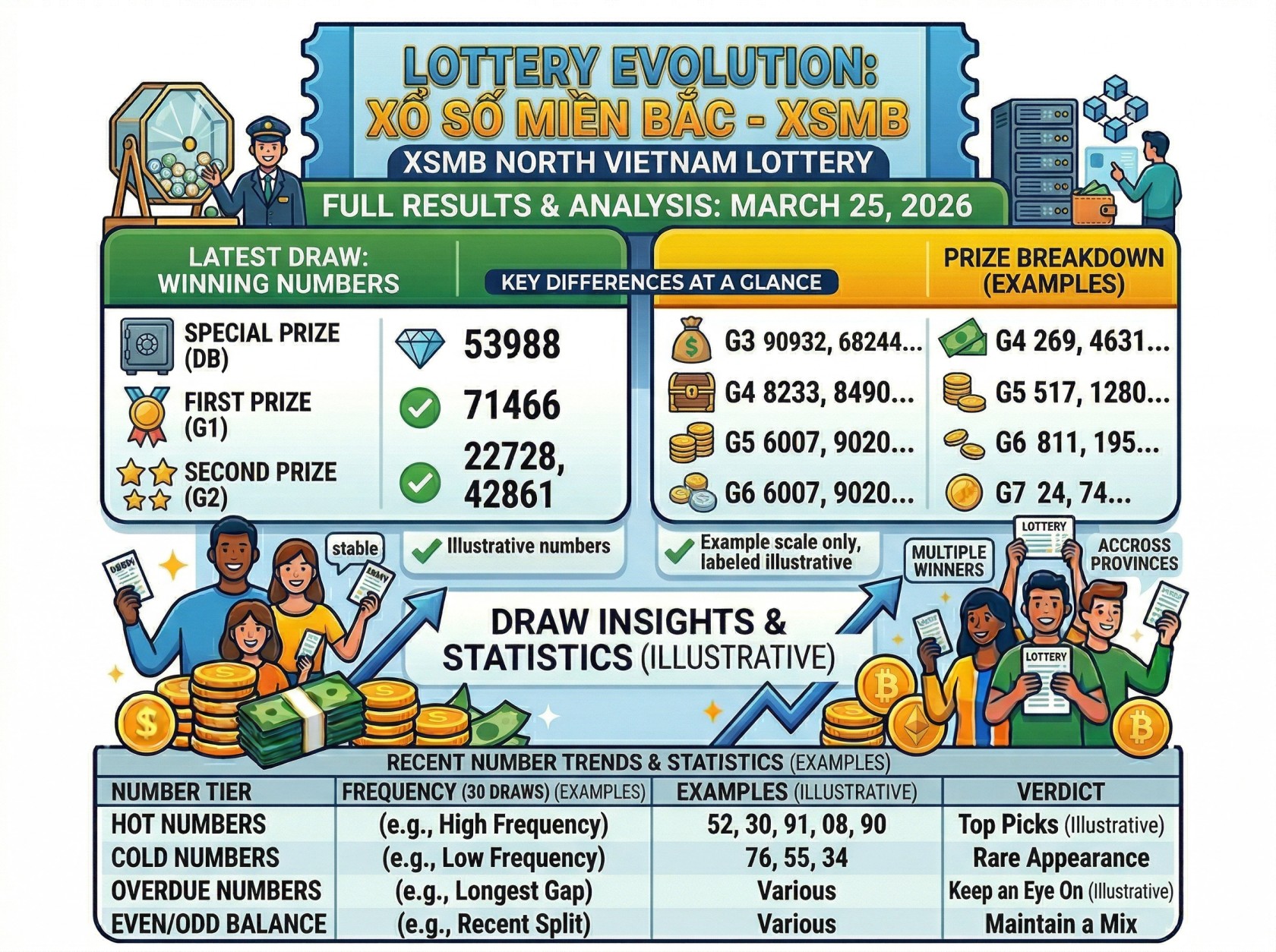 Kết quả XSMB ngày 25 tháng 3 năm 2026 đã chính thức được công bố với đầy đủ các hạng giải từ đặc biệt đến giải bảy. Là một trong những loại hình xổ số được theo dõi nhiều nhất, XSMB tiếp tục thu hút sự quan tâm lớn từ người chơi trên cả nước.